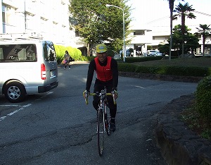 15年前から健康のために水泳を始め、その後マラソン、自転車へと興味が移り、トライアスロンにも挑戦、各大会に出て頑張っておられるそうです。 今日もロードレース競技用自転車で、かっこよいスタイルでお住まいの大阪吹田から来られたと聞き驚きました。