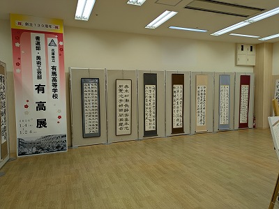 書道パフォーマンスに先立ちまして、同施設1階特設スペースにおいて1月4日から24日まで、書道部・美術工芸部の作品を展示した有高展を開催して頂きました。